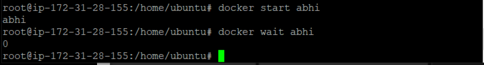 The wait command will wait for the monitored container/containers to stop and will print their exit codes. Code language: PHP (php)