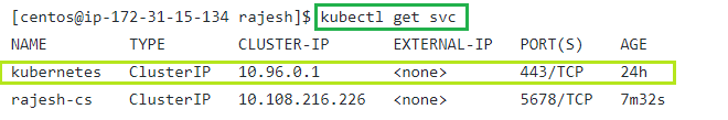 Every Kubernetes cluster is provisioned with a special service that provides a way for internal applications to talk to the API server. by the command kubectl get svc, we can see that service listed with the name ‘kubernates‘
