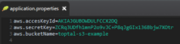 To connect to the bucket, our Amazon S3 client needs to have credentials provided. Credentials are the access keys we created earlier. We define the access key ID and value in the application.properties file; we have named our bucket toptal-s3-example.