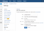 Jenkins already provided the URL for us which we will use on Bitbucket. We go to our Bitbucket repository page and, in the settings menu, click on Web hooks. Subsequently clicking on Add webhook presents us with the following screen, which we fill in as follows: