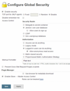 For Bitbucket to be able to push code to Jenkins, we need to reconfigure Jenkins global security to allow anonymous read access. Additionally, for our setup, we have to disable the default Jenkins option which prevents cross-site request forgery. To do this, go to Manage Jenkins and choose Configure global security. Check Allow anonymous read access and check Prevent cross-site forgery exploits. Then save the configuration.