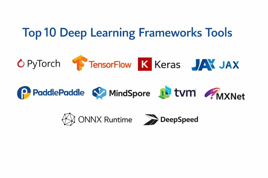 Deep learning frameworks are software platforms that help teams build, train, test, and deploy neural network models. In simple words, they provide ready building blocks for tensors, automatic differentiation, GPU acceleration, distributed training, and model optimization so you do not have to write everything from scratch. They matter because modern applications depend on computer vision, speech, recommendation, forecasting, and generative AI, and these models must be trained faster, scaled safely, and shipped reliably. Common use cases include image classification and detection, natural language understanding and text generation, speech recognition, fraud detection, and predictive maintenance. When selecting a framework, evaluate ease of prototyping, performance on GPUs and accelerators, distributed training maturity, model deployment options, debugging experience, ecosystem libraries, community support, stability of releases, interoperability with model formats, and long-term maintainability.