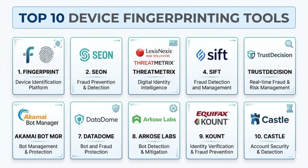 The tools featured in this list were selected based on their technical robustness in high-stakes production environments. We prioritized platforms that demonstrate high “stickiness” or persistence—the ability to recognize a device accurately over long periods and across various attempts to hide its identity. Market mindshare was a significant factor, as platforms with larger data networks benefit from “network effects,” where a fraudster identified on one site can be instantly flagged across all other sites using the same tool.