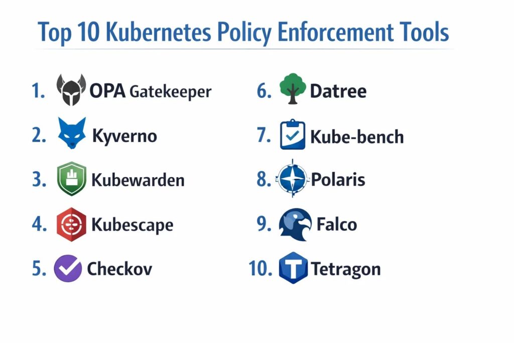 Top 10 Kubernetes Policy Enforcement Tools: Features, Pros, Cons & Comparison