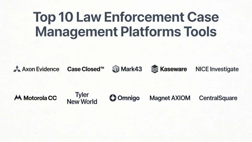 The selection of these top 10 platforms was based on a rigorous evaluation of their technical maturity, compliance posture, and operational impact. We prioritized systems that demonstrate a “Security-First” philosophy, specifically those that are built from the ground up to meet CJIS (Criminal Justice Information Services) and FEDRAMP standards. High importance was placed on interoperability—the ability of the software to integrate via open APIs with existing Computer-Aided Dispatch (CAD) and Records Management Systems (RMS).