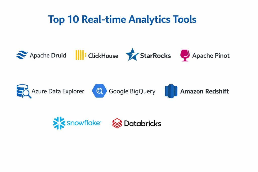 Real-time analytics platforms help you move from delayed reporting to immediate insight and action. The best choice depends on your data volume, latency goals, team skills, and how you plan to serve analytics to users. Specialized engines like Apache Druid and Apache Pinot can excel when you need low-latency dashboards and high concurrency on live event streams. High-performance databases like ClickHouse can deliver strong speed and efficiency when tuned well. Cloud platforms like Snowflake, Google BigQuery, Amazon Redshift, Azure Data Explorer, and Databricks can reduce operational burden, but you must manage usage and cost carefully. The smartest next step is to shortlist two or three tools, run a pilot with real workloads, validate ingestion and query latency, then confirm integration and governance fit.