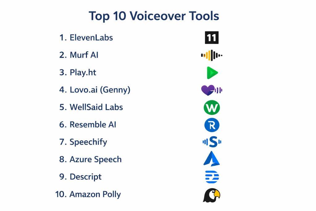 | 1. ElevenLabs | 10 | 8 | 9 | 8 | 10 | 9 | 8 | 9.15 |